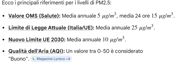 è materiale particolato fine con diametro inferiore o uguale a 2,5 micrometri , derivante principalmente da combustioni (traffico, riscaldamento, industria). Queste polveri sottili penetrano in profondità nei polmoni e nel sangue, causando malattie respiratorie, cardiovascolari e tumori. L'OMS raccomanda limiti molto stringenti rispetto alla normativa attuale.